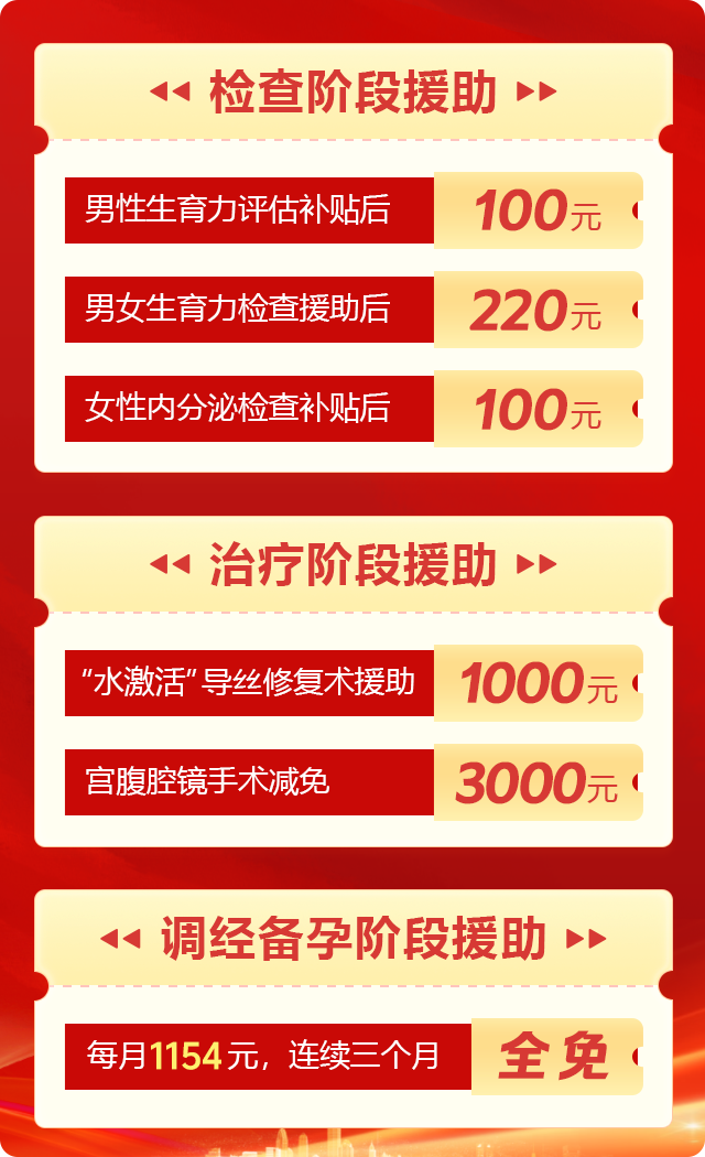 为了减轻不孕不育家庭的经济压力,郑州慈善总会送子公益基金为来院患者提供“优生及不孕普查保障型援助”和“疑难性不孕深度帮扶服务”。患者只需报名登记,即可通过免申报、直接补贴的方式,享受全方位的专属援助服务。点击在线咨询,免费申请补助